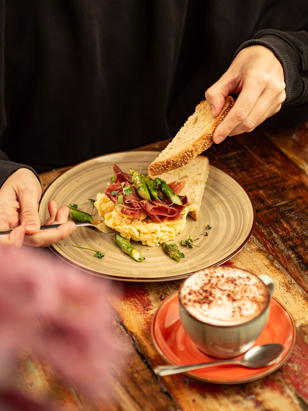 Great small plates for sharing and fresh juices. We had the brunch menu. We initially ordered drinks but as I watched other Sehr sehr sehr lecker!